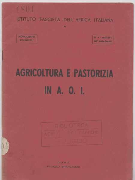 Agricoltura e pastorizia in A. O. I. - Monografie coloniali n. 2 - 1938 - 14° della serie
