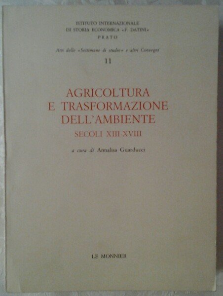 AGRICOLTURA E TRASFORMAZIONE DELL'AMBIENTE, SECOLI XIII - XVIII. ATTI DELLA "UNDICESIMA SETTIMANA DI STUDIO" (APRILE 1979). ISTITUTO INTERNAZIONALE DI STORIA ECONOMICA "F. DATINI"