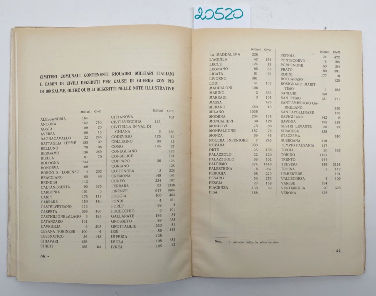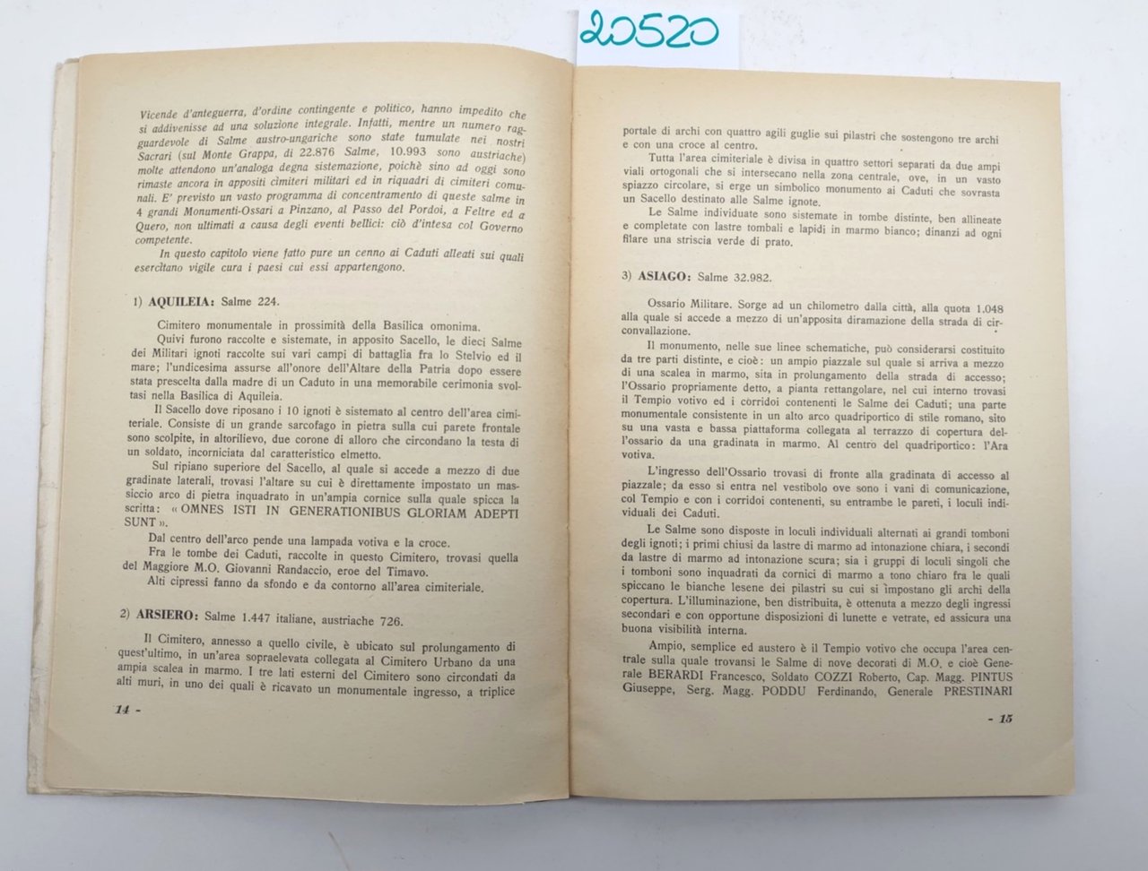Ai caduti di tutte le guerre statistiche e sintesi delle opere in Italia e all'estero 1950