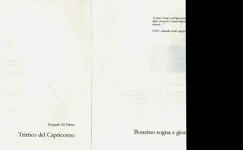 Cartellina In-8° carré (cm 21), in custodia editoriale in cartoncino nero; contiene sette quartini sciolti, di cui l'ultimo con l'incisione di Simonetta Melani. Edizione di 53 copie numerate e firmate dagli autori. Pasquale DI PALMO, poeta, critico e traduttore, è nato nel 1958 a Venezia, dove vive. Ha pubblicato le raccolte di poesia: Quaderno del vento (Stamperia dell’Arancio, 1996), Horror Lucis (Edizioni dell’Erba, 1997), Ritorno a Sovana (Edizioni L’Obliquo, 2003), Marine e altri sortilegi (Il Ponte del Sale, 2006), Trittico del distacco (Passigli, 2015, Premio Ceppo Pistoia 2017) e varie plaquettes, tra cui Addio a Mirco (con illustrazioni di Pablo Echaurren, Il Ponte del Sale, 2013). Sue poesie sono apparse in numerose antologie e riviste, tra cui “Nuovi Argomenti”, “Poesia” e “Paragone” e sono state tradotte in diverse lingue. Ha pubblicato i saggi: I libri e le furie (2007), Lei delira, signor Artaud. Un sillabario della crudeltà (2011) e Venezia. Nel labirinto di Brodskij e altri irregolari (2017). Ha curato e tradotto diversi volumi, tra cui opere di Artaud, Corbière, Daumal, d’Houville, Gilbert-Lecomte, Huysmans, Michaux e Radiguet. Ha inoltre curato I surrealisti francesi. Poesia e delirio (2004), I begli occhi del ladro di Beppe Salvia (2004), Neri Pozza. La vita, le immagini (2005), Saranno idee d’arte e di poesia. Carteggi con Buzzati, Gadda, Montale e Parise di Neri Pozza (2006), Album Antonin Artaud (2010). Collabora all’inserto culturale “Alias” del quotidiano “Il manifesto”.