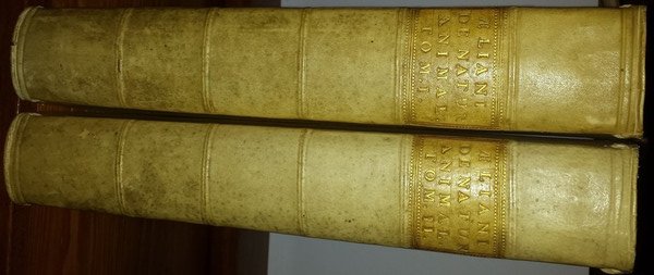 In-4(26 cm) 2 voll. XIV XXVII (35) 603 (1); (1) 606-1128 (88). Sul frontespizio e in fine due diverse vignetta calcografiche, con l'insegna della Societas ad literas promovendas (motto: Resurges S.A.L.P) titolo in latino e greco. Alcuni finalini xilografati. Piena pergamena coeva con contropiatti rivestiti di carta marmorizzata. Esemplare in perfette condizioni, privo di alcun difetto. Ex-libris EH. Claudio Eliano (in greco antico: ?a?d? ?a?, in latino: Claudius Aelianus; Preneste, 165/170 circa – 235) è stato un filosofo e scrittore romano in lingua greca. Della vita di Eliano si sa quello che Filostrato ci riferisce nelle sue Vite dei sofisti. Sulla natura degli animali è una compilazione in diciassette libri pervenutaci per intero. In essa lo spirito enciclopedico dell'autore fa confluire informazioni pseudoscientifiche e curiosità leggendarie. Gli aneddoti di Eliano su animali raramente dipendono da osservazione diretta: essi sono quasi interamente tratti da fonti scritte, spesso da Plinio il Vecchio, ma anche da altri autori e opere ormai perdute, per le quali è, quindi, un testimone prezioso. In-4 (26 cm) 2 voll. XIV XXVII (35) 603 (1); (1) 606-1128 (88). On the title page and finally two different intaglio vignettes, with the insignia of the Societas ad literas promovendas (motto: Resurges S.A.L.P) title in Latin and Greek. Some woodcut ends. Full coeval parchment with counterplates covered with marbled paper. Exemplary in perfect condition, without any defects. Ex-libris EH.