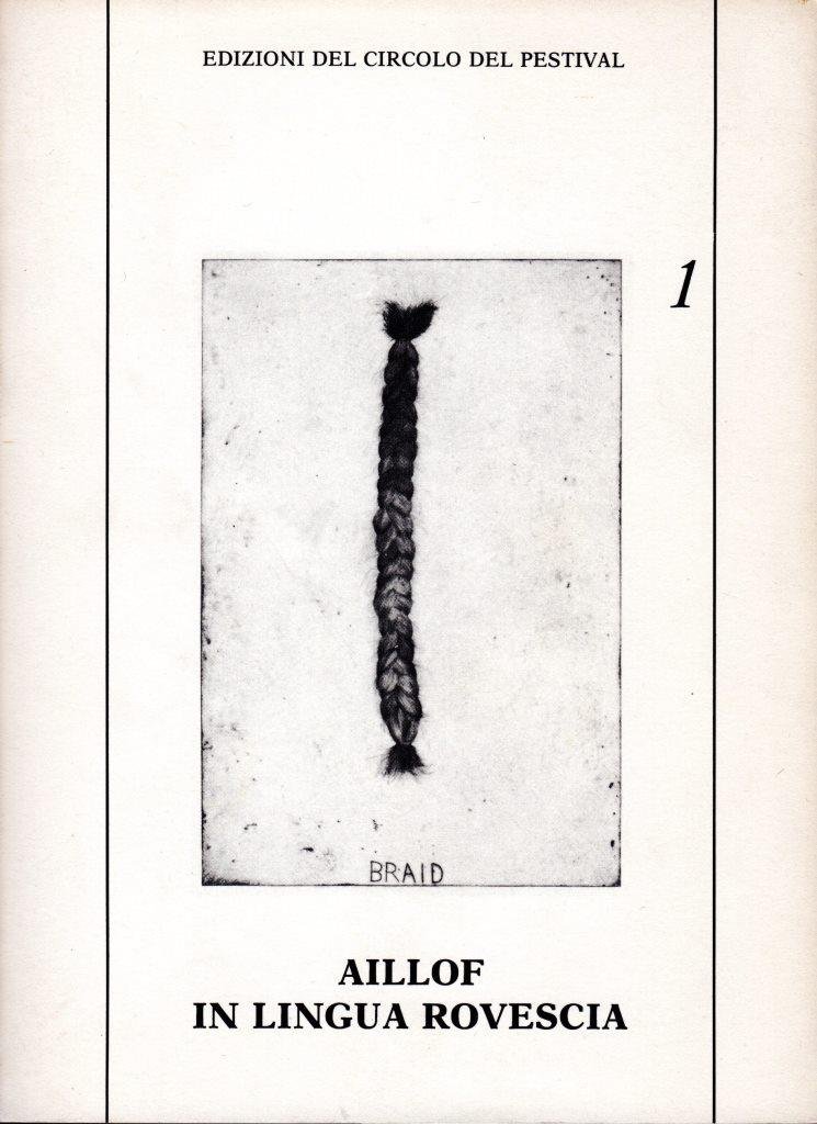 Aillof in lingua rovescia - Molte parole e qualche evento sulla follia, prima edizione 1985, pp. 54, formato 16 x 21,5.<BR>Copertina morbida con sovraccoperta illustrata da Jim Dine, con titoli in nero al piatto anteriore. All'interno numerose tavole illustrate in b/n.Impostazione grafica di Romano Masoni.<BR>Ottime condizioni.