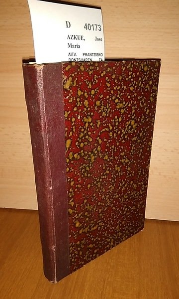AZKUE, Jose María AITA PRANTZISKO DONTSUAREN TA BERE PRAILIEN LORATXUAK Guipuzcoana. Tolosa 1923 361 p. (18,5 cm) Enc. holandesa, lomo tela. Dibujos en bn intercalados en el texto Deslucido. Encuadernación muda. Una hoja desprendida en índice. Sello anterior propietario D (Ref.40173) iglesia católica cristianismo biografia santo francisco fundador