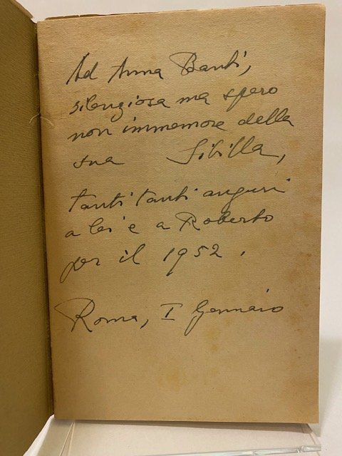 Brossura editoriale con bella sovraccoperta illustrata con disegno di Guttuso, copia ottima (lievissimo strappetto alla sovrac. post.) pregiata da una bella e lunga dedica dell’autrice ad Anna Banti datata 1 gennaio 1952. Cfr. Gambetti-Vezzosi, p. 20.