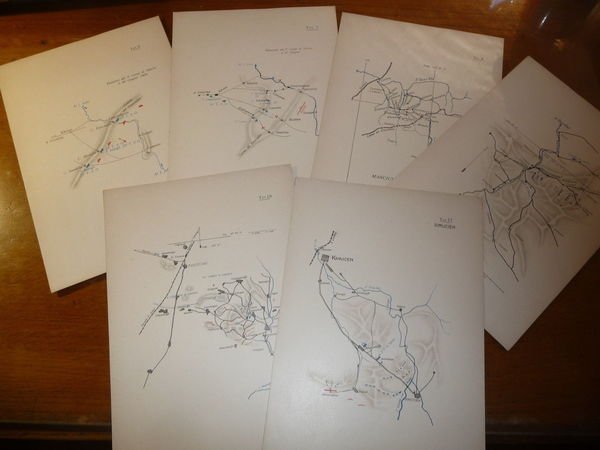 DESCRIZIONE: 26 PIANTINE A COLORI SPLENDIDAMENTE CONSERVATE CON COFANETTO IN CARTONCINO SAGOMATO DELL'EPOCA. POSIZIONE DEGLI SCHIERAMENTI, MAPPE ECC. CM.24,5X17 . DIVERSE MAPPE GRANDI RIPIEGATE IN 2 E 4 PARTI. Rarissimo cofanetto con tutte le carte del vol. che singolarmente e sicuramente più facile da trovare. CONDIZIONI: Ottime. PESO / WEIGHT: 273 gr. without package
