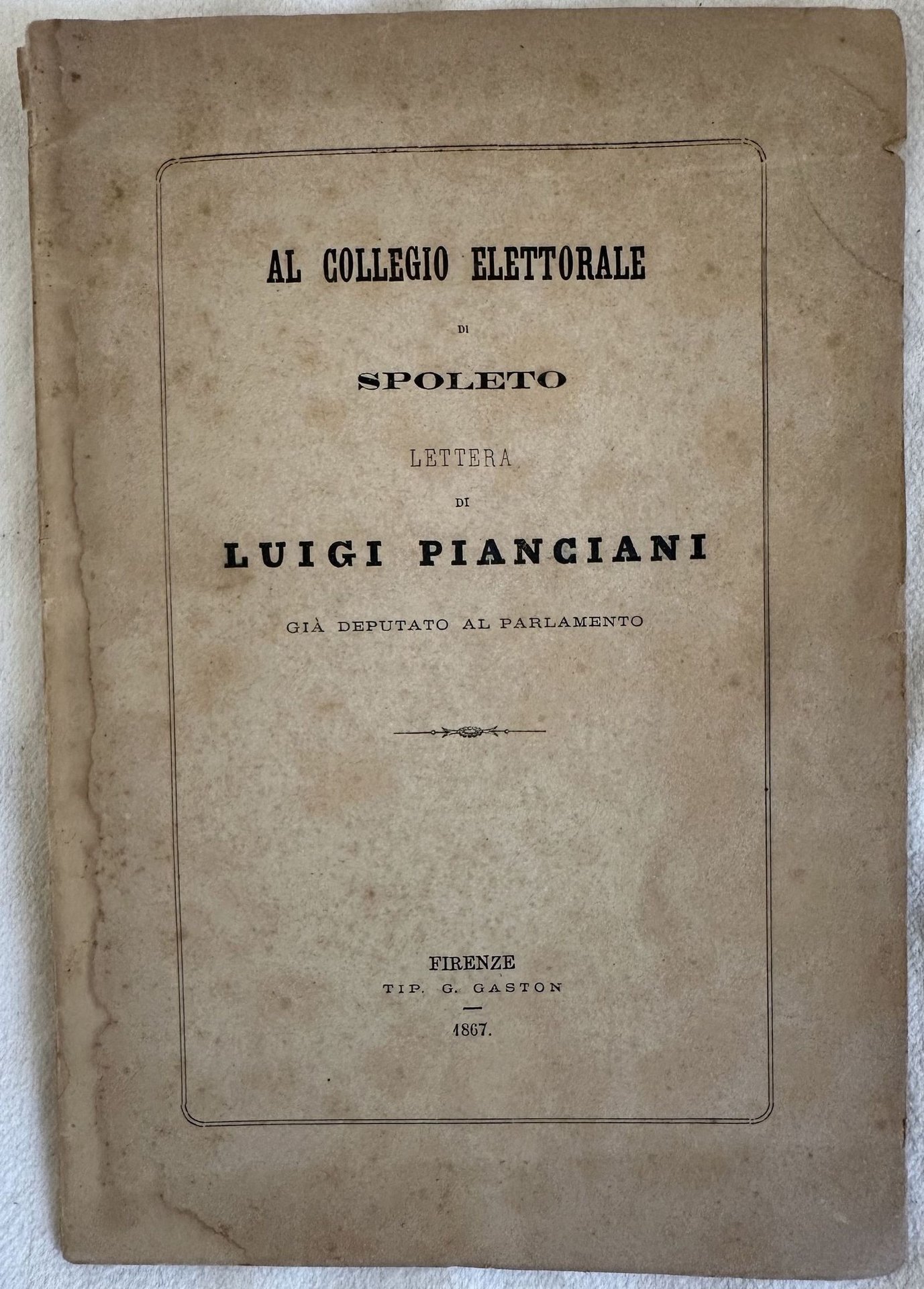 AL COLLEGIO ELETTORALE DI SPOLETO LETTERA DI LUIGI PIANCIANI GIA DEPUTATO AL PARLAMENTO