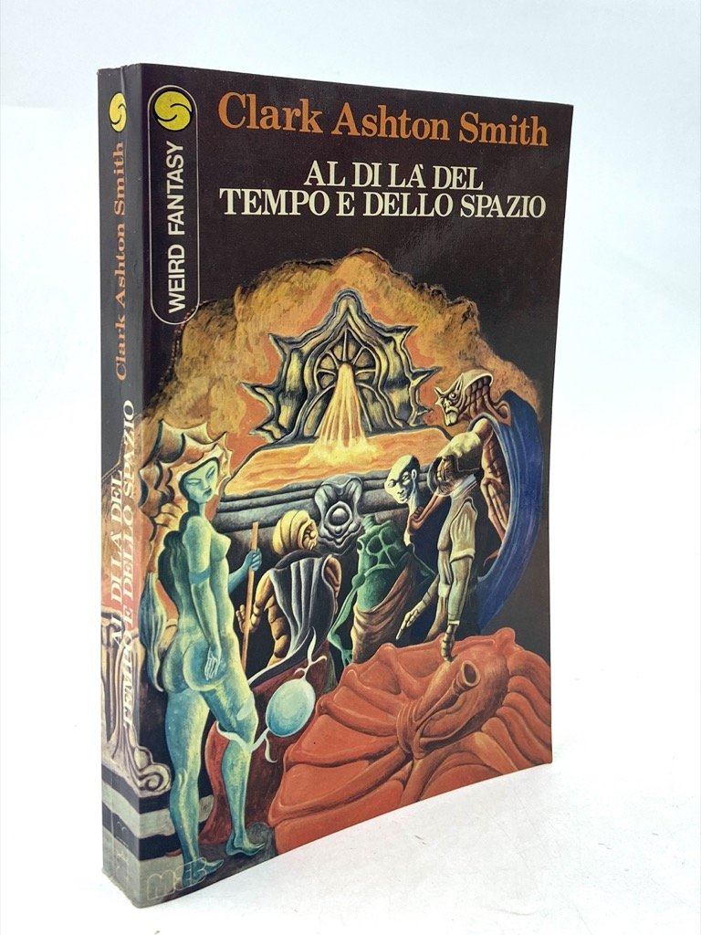 Brossura editoriale illustrata, cm 19.5 x 12, pp 259 (3). Collana Saga (Weird Fantasy), numero 29. Timbro ex libris sulla prima pagina. Prima edizione italiana di Out of Space and Time, terza antologia di racconti di Clark Ashton Smith curata dall'autore per la Arkham House, casa editrice di August Derleth e Donald Wandrei. Clark Ashton Smith fu uno degli iniziatori della narrativa fantastica americana e uno dei «tre moschettieri» della rivista Weird Tales accanto a Lovecraft e Howard; dopo un'iniziale produzione poetica l'autore si dedicò alla letteratura weird e horror per circa un decennio prima di abbandonare la scrittura in favore delle arti plastiche a metà degli anni '30. Traduzione di Teobaldo Del Tanaro, copertina di Walter Falciatore.