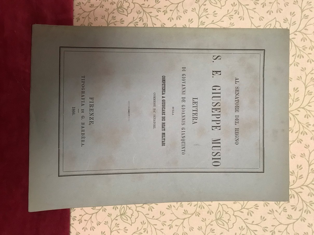 AL SENATORE DEL REGNO S.E. GIUSEPPE MUSIO, LETTERA DI G.D.G.G., SULLA COMPETENZA A GIUDICARE DEI REATI MILITARI COMMESSI DA' SENATORI.