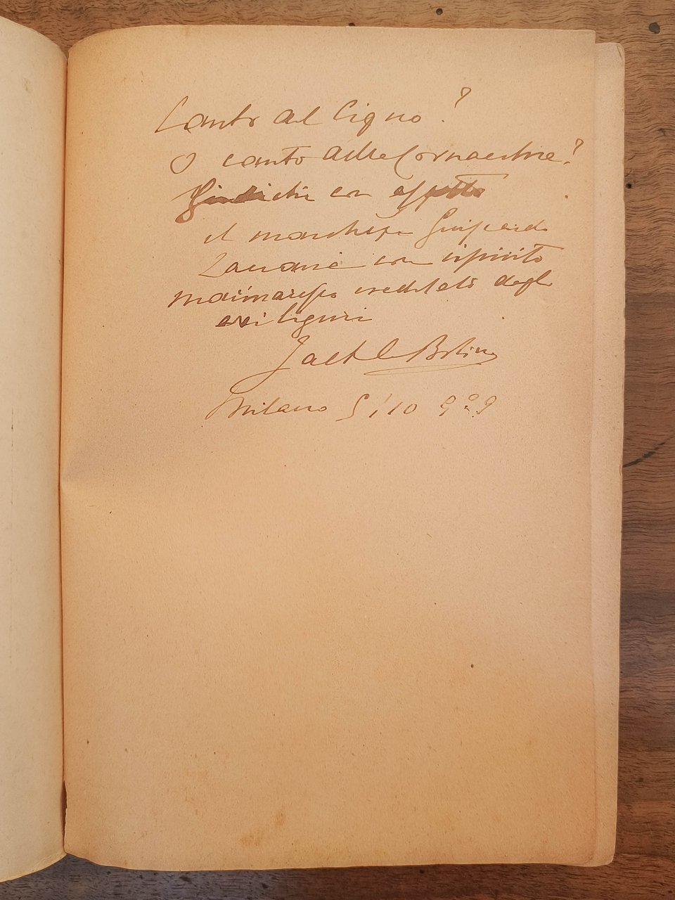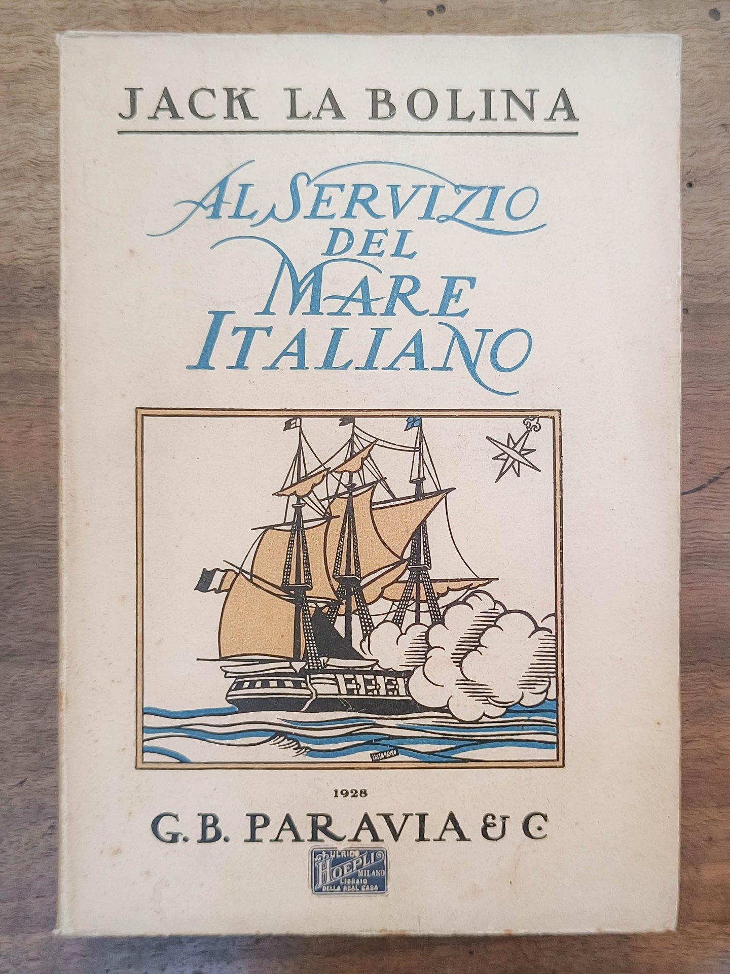 Al servizio del mare italiano, Torino, Paravia, 1928. Cm 23,2. Pp. XXXI 525. Brossura editoriale. Carte leggermente brunite. Dedica autografa dell'autore datata 1929 "canto al cigno? o canto alla cornacchia? giudichi con affetto il marchese Giuscardo Zanoni con ispirito marinaresco ereditato dagli avi liguri".