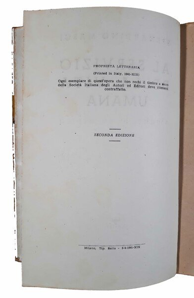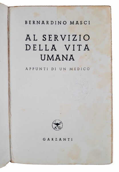 Un volume, 220x146 mm, leg. in brossura editoriale illustrata con titolo al dorso e alette; pp. 530. Seconda edizione (la prima fu pubblicata nel 1940) delle memorie romanzate del medico B. Masci. Rif.: IT\ICCU\TO0\0929387. OCLC, 797916686. Cond.: leggere tracce d'uso. Esemplare molto buono.
