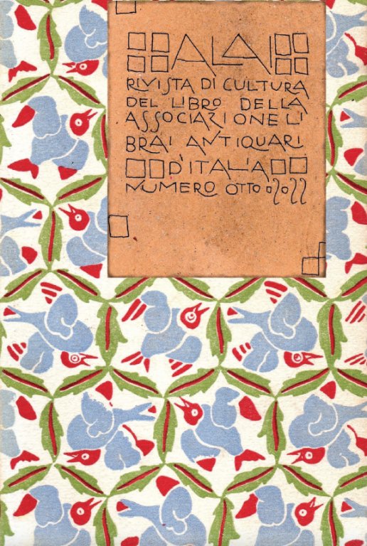 In-8° (cm. 24), brossura editoriale figurata (E. Fontana), pp. 276 [112] con illustrazioni in nero n.t. Annuario dell'Associazione Librai Antiquari d'Italia che contiene testi di bibliofilia e bibliografia di: G. D'Alessandro (I libri degli Ufo); P. Puglia (Quattro schede per Il Maestro e Margherita); G. Gaglio (9 liriche. La prima raccolta poetica di Lucio Piccolo); L Gambetti (Hemingway in Italia: una storia accidentata); A Castronuovo (La cognizione dell’odore. Su due rare pubblicazioni di Carlo Emilio Gadda); G. Coronelli («Trent’anni», «non ancora trent’anni». Varianti e prime edizioni del Manifesto del futurismo); G. Biancardi (Alcune precisazioni sull’editio princeps della Ricciarda foscoliana); E. Fontana (Gino Barbieri: «incisore di guerra»); A. Porro (Il valore delle bozze di stampa e dei testi promanuscripto: un esempio settecentesco); F. Nepori (I cataloghi dei librai antiquari. Un patrimonio da salvaguardare); E. Tallone (Quattro caratteri dello stile moderno); M. Chiabrando (Incubatrice di modernità. La Rinascente nei suoi primi cinquant’anni).