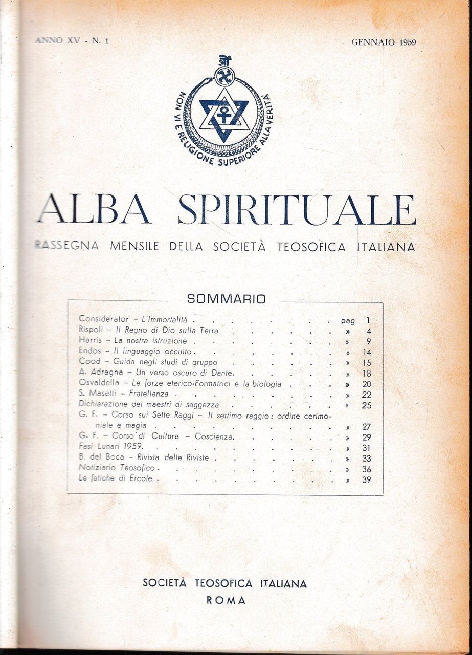 Alba spirituale. Rassegna mensile della società teosofica italiana. 24 riviste rilegate in unica opera.
