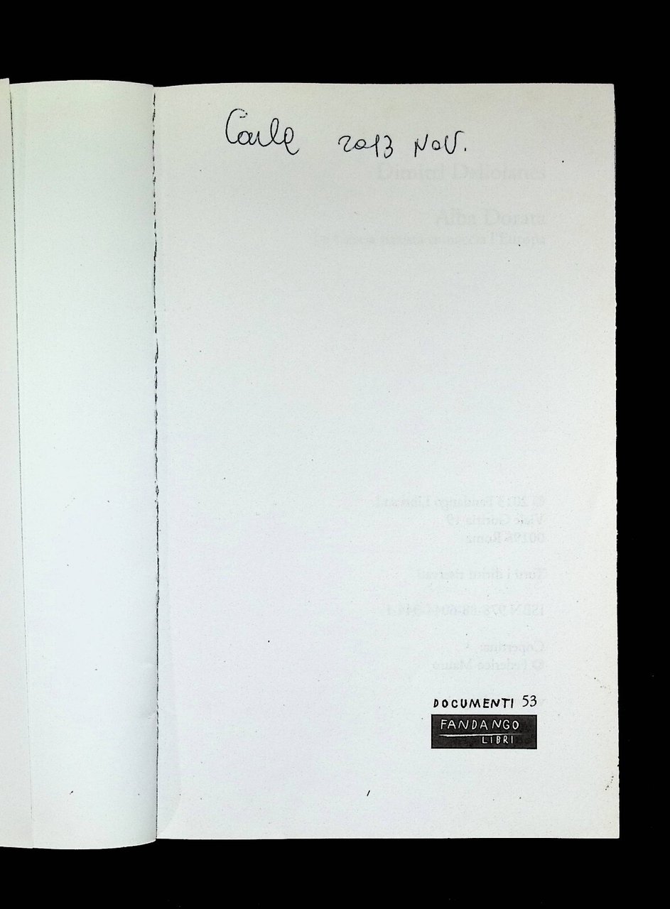 Albadorata Libro Dimitri Deliolanes 2013 Grecia Nazista Fandango 9788860443441