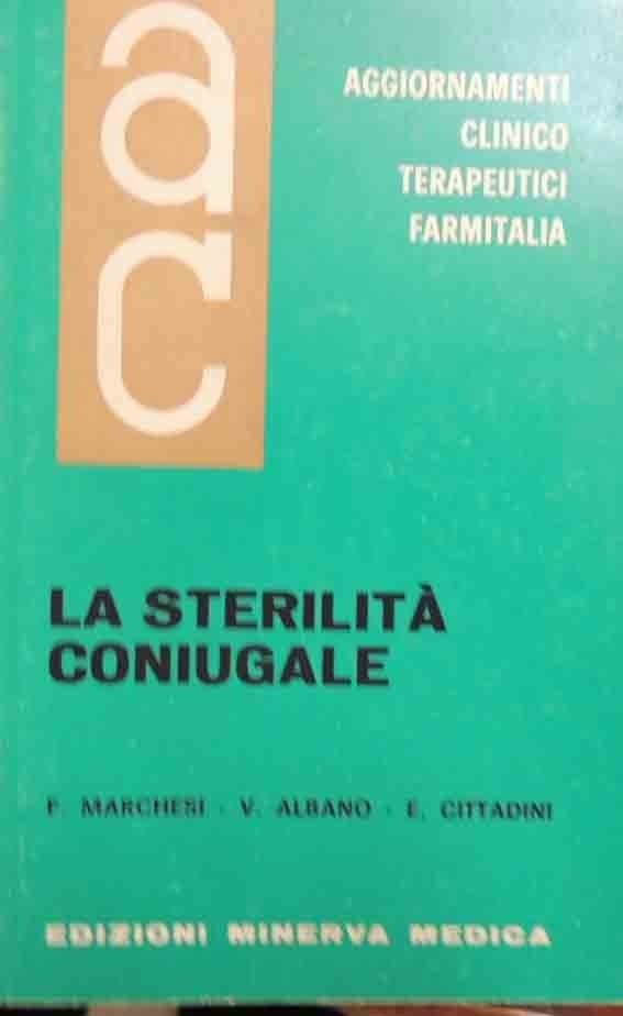 V. Albano, E. Cittadini, F. Marchesi, La sterilità coniugale, numero monografico di Aggiornamenti Clinicoterapeutici. Collana monografica mensile, vol. X, n. 1, gennaio 1969, Edizioni Minerva Medica, s.l. (ma stampato a Saluzzo, presso la Tip. Ed. Minerva Medica), pp. VII, 212, ill. b.n. e col., cm 22, br. ed. Piccolo timbro di appartenenza all’occhiello e al frontespizio. Lievi tracce d’uso alla brossura, minima ingiallitura della carta, poche carte con sottolineature a biro, per il resto ben conservato.
