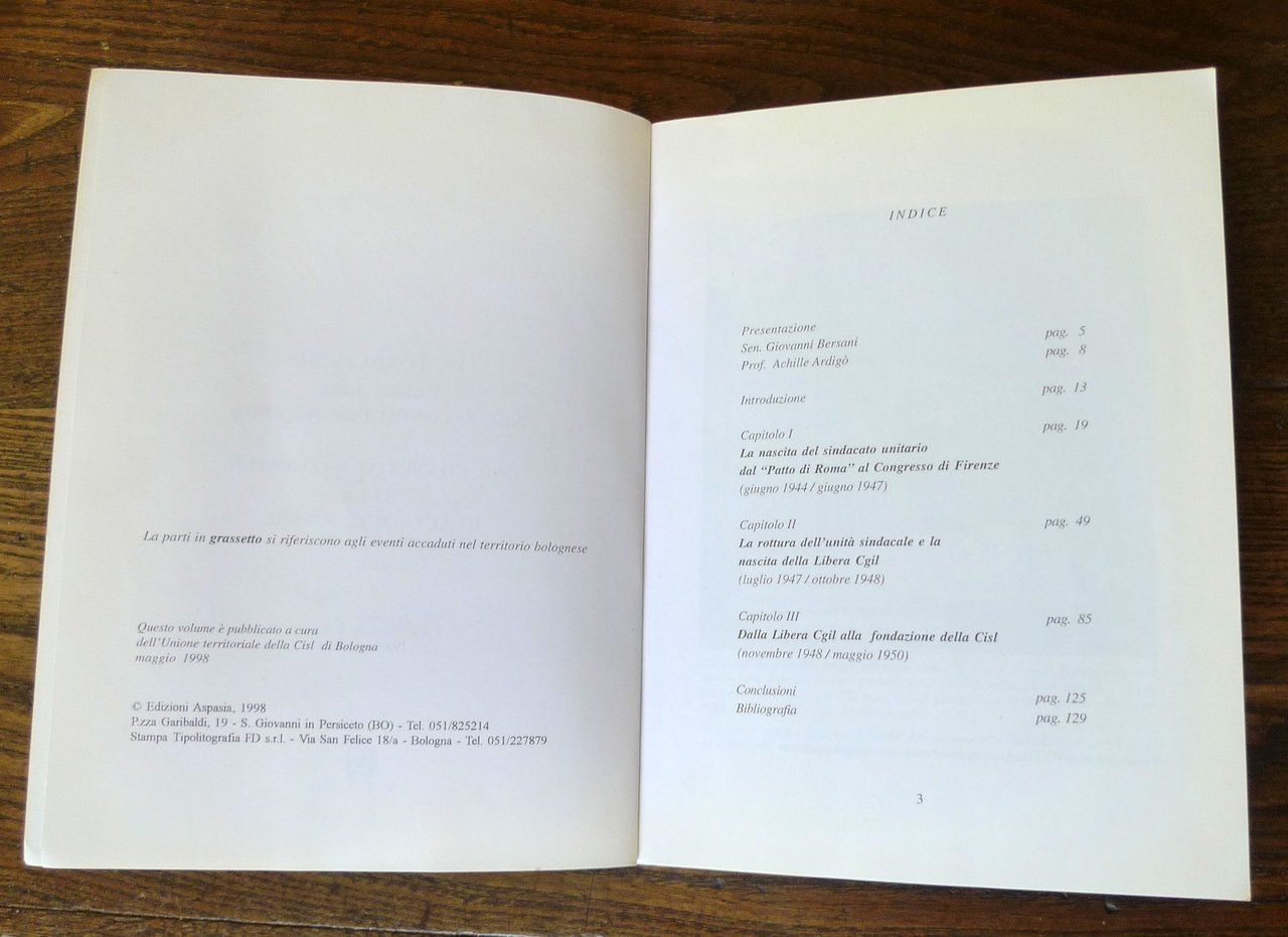 Alessandro Alberani,LA FONDAZIONE DELLA CISL NEL SECONDO DOPOGUERRADAL CONTESTO NAZIONALE ALLA REALTÀ BOLOGNESE.Presentazione: Sen Giovanni Bersani,Prof. Achille Ardigò.Edizioni Aspasia, S.Giovanni in Persiceto (BO 1998,brossura, 21x15,5 cm., pp.147,illustrazioni in bianco e nero,peso: g.400cod.9650CONDIZIONI DEL LIBRO: ottime