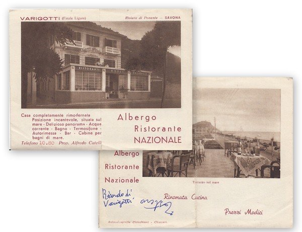 Albergo Ristorante Nazionale. Varigotti Finale Ligure Savona. Depliant pubblicitario.