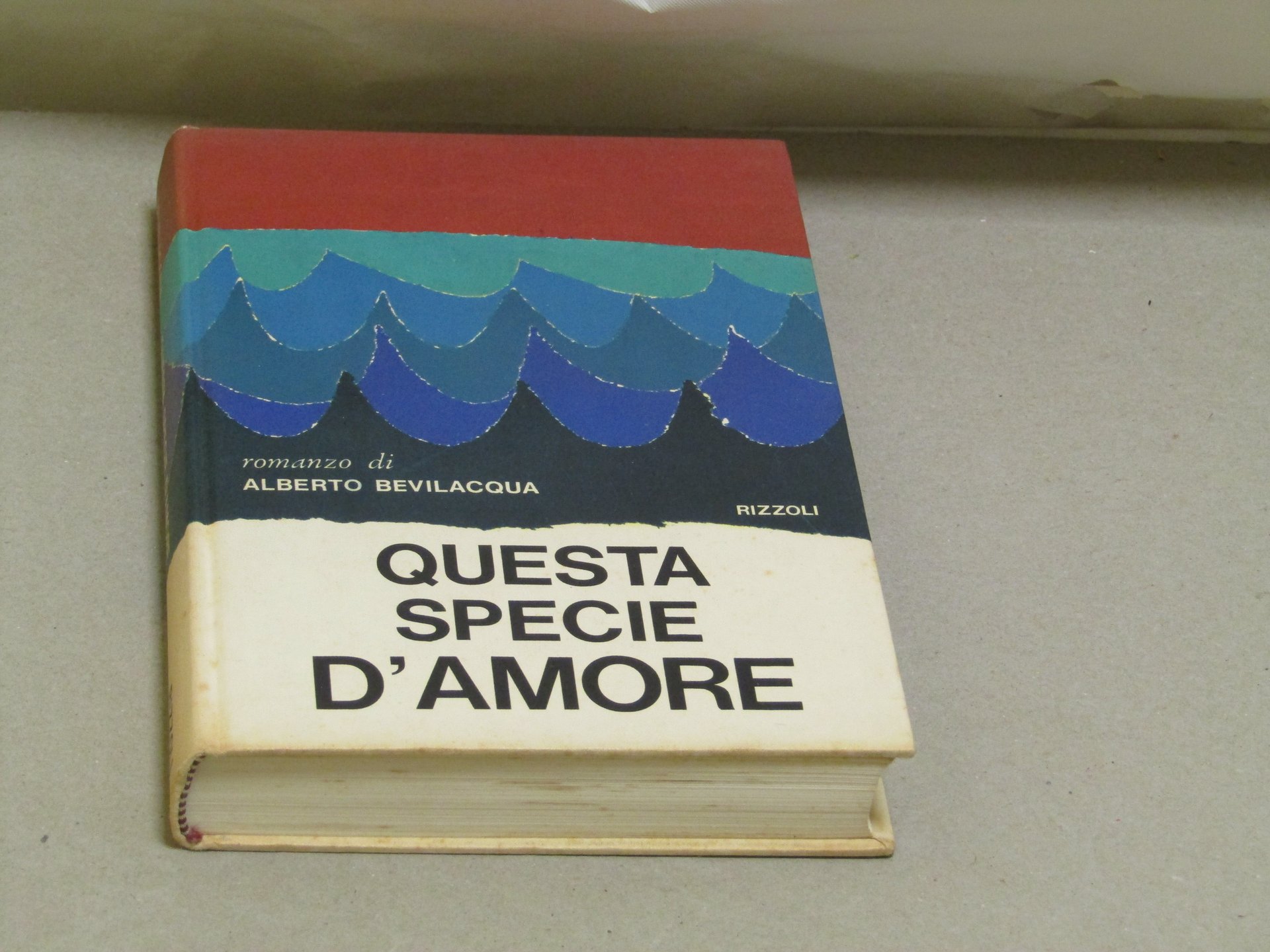 Alberto Bevilacqua. Questa specie d'amore. I edizione.. Milano, Rizzoli editore 1966 italiano, in ottavo pp.267 Romanzo in cui viene affrontato il tema del matrimonio, dell'intesa coniugale, dell'impossibilità dei giovani di risolvere "l'equazione moglie-marito" senza cadere nell'ipocrisia del compromesso (...) attraverso la confessione del protagonista che ha il potere di coinvolgere il lettore in un tensione senza respiro. Prima edizione del volume.