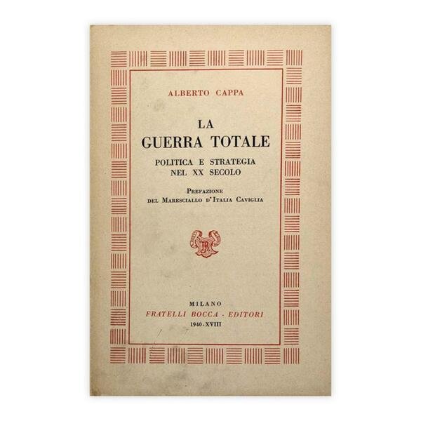 Autore: Alberto Cappa Titolo: La guerra totale Sottotitolo: Politica e strategia nel XX Secolo - Prefazione del Maresciallo d'Italia Caviglia Edizione: MIlano 1940 - Fratelli Bocca Editori Dimensioni: 19 x 12,5 cm c.a. Pagine: 292 Copertina: Brossura Condizioni: Ottime come da foto
