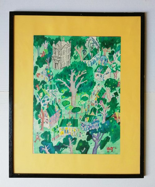 - Acquarello originale formato 45, 5X34 - Formato cornice in legno 64X52, 5. Ottime condizioni