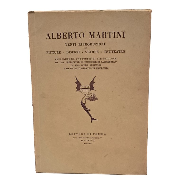 PRIMA EDIZIONE preceduta da uno studio di Vittorio Pica da una prefazione di Emanuele di Castelbarco da una guida artistica e da un autoritratto in tricromia Preziosa raccolta di quattro saggi pubblicati in precedenza su riviste o con tirature limitate; opuscolo raro dedicato a Alberto Giacomo Spiridione Martini (Oderzo, 24 novembre 1876 – Milano, 8 novembre 1954), disegnatore, pittore, incisore e illustratore italiano, precursore del movimento surrealista. Brossura. Pp. 76. Buone condizioni.