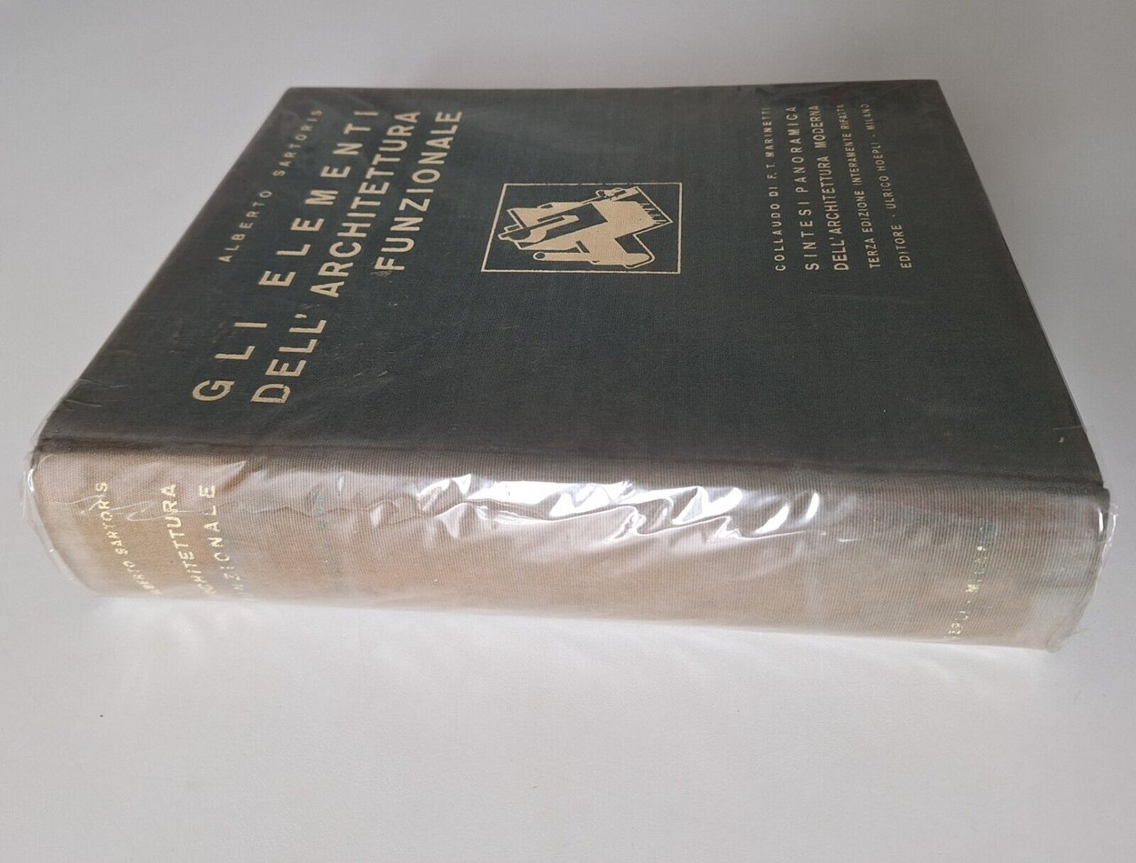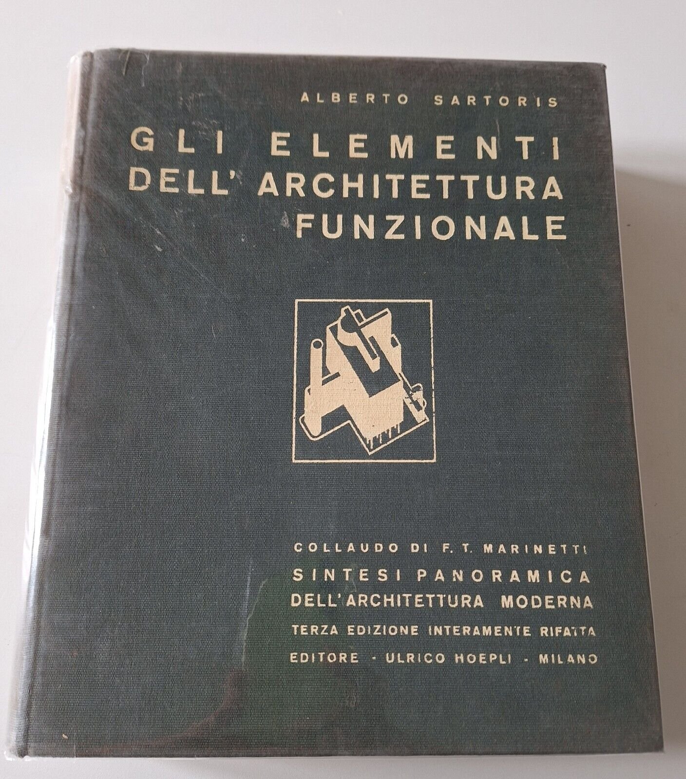 ALBERTO SARTORIS GLI ELEMENTI DELL'ARCHITETTURA FUNZIONALE HOEPLI 1941COLLAUDO DI F.T. MARINETTI TERZA EDIZIONE INTERAMENTE RIFATTAIn 4°, legatura editoriale, copertina telata illustrata, ill. in b/n.Lievissimi segni alla copertina, pagine fresche e pulite.