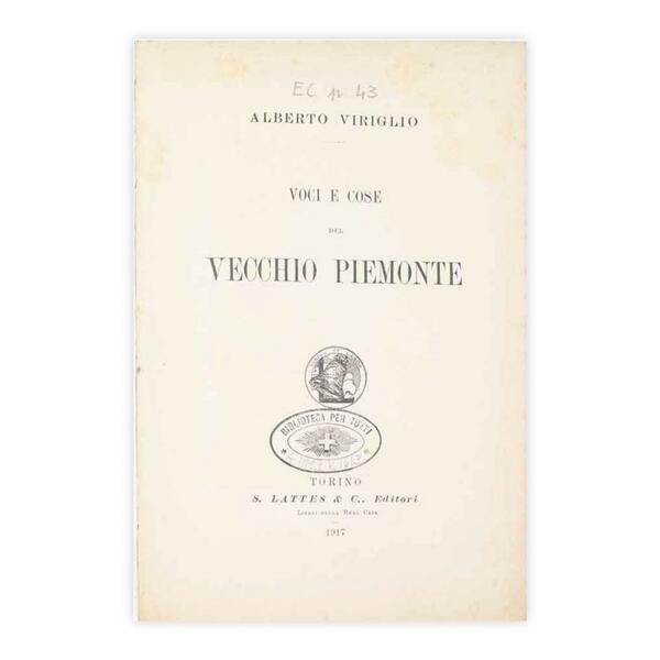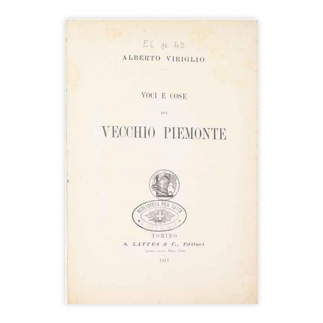 Autore: Alberto Viriglio Titolo: Voci e Cose del vecchio Piemonte Edizione: S. Lattes e C. 1917 Dimensioni: 22,5x15 cm Pagine: 312 Copertina: Cartonato Condizioni: Ottime