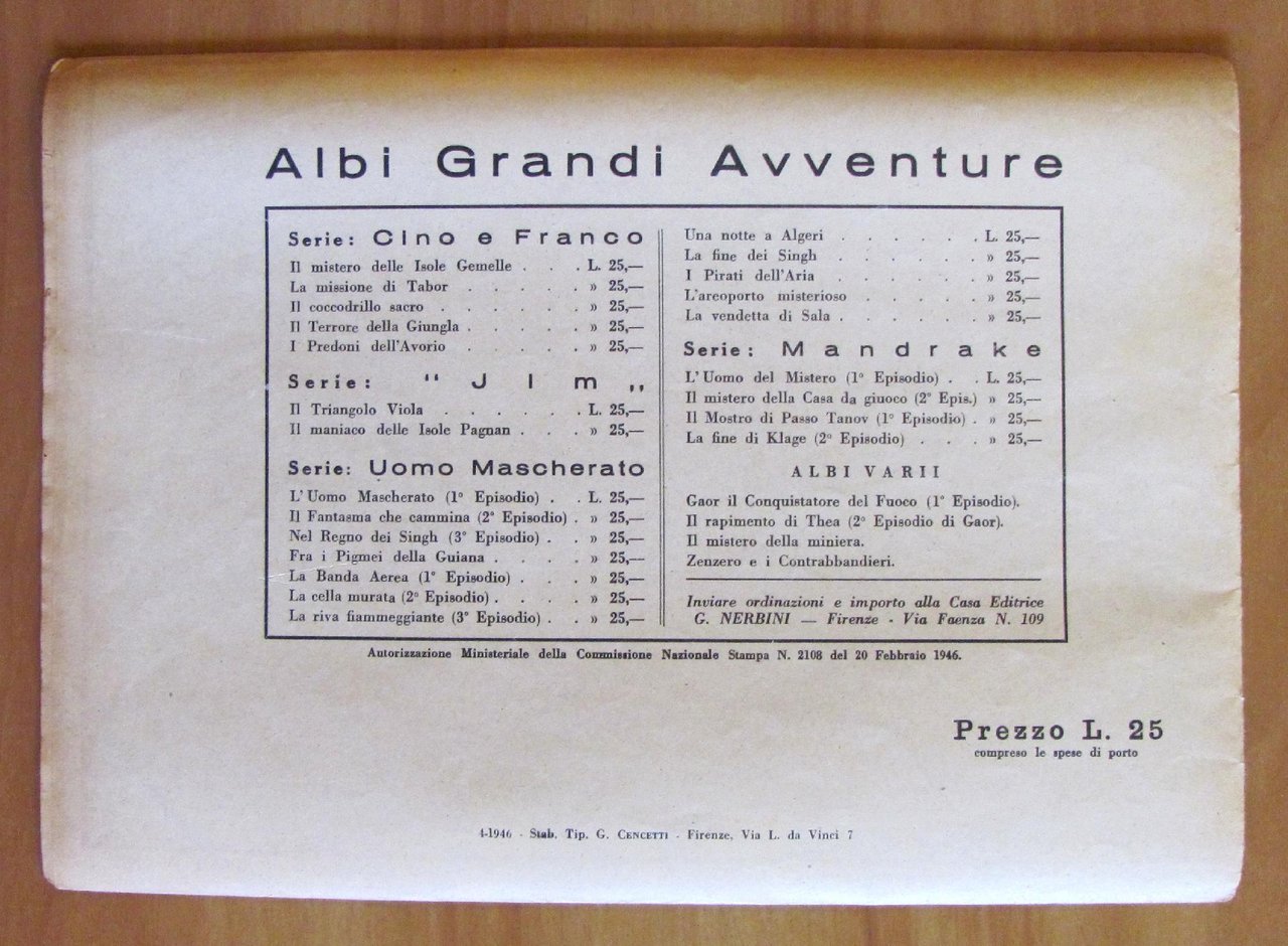 ALBI GRANDI AVVENTURE N.1, 1946 Serie UOMO MASCHERATO - L'aeroporto misterioso
