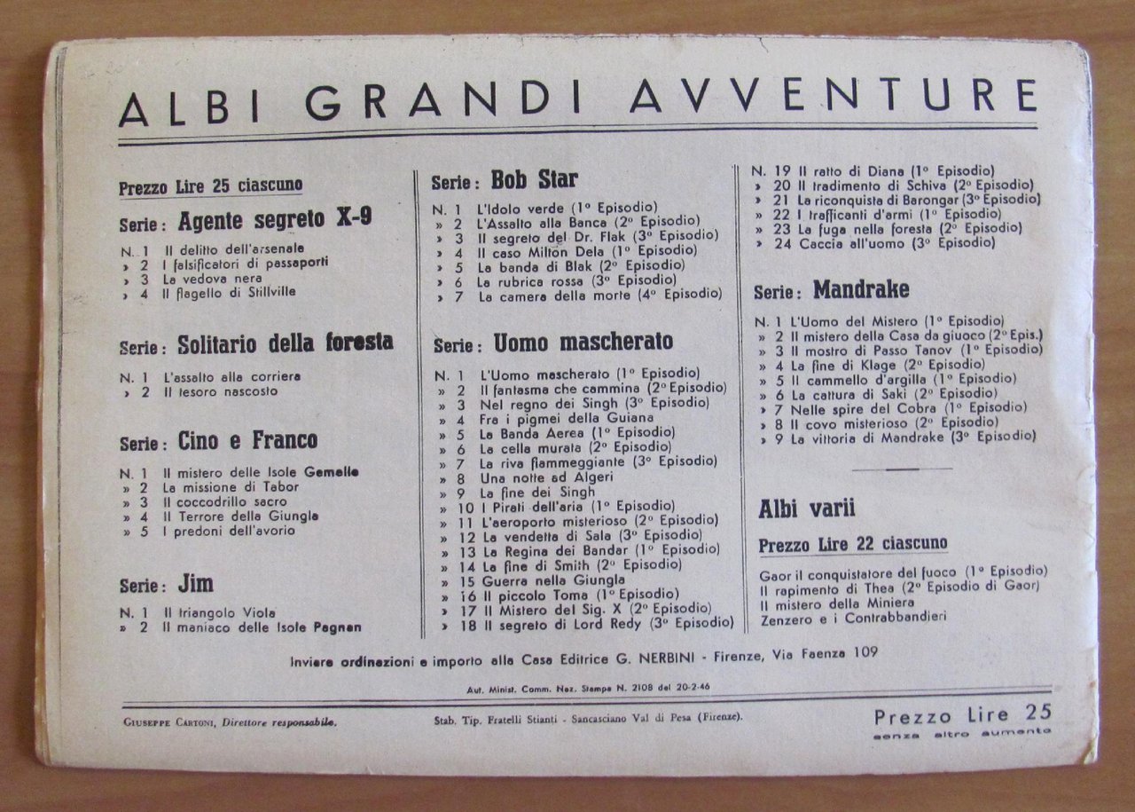 ALBI GRANDI AVVENTURE N.4, 1946 Serie UOMO MASCHERATO - Tra i Pigmei della Giungla