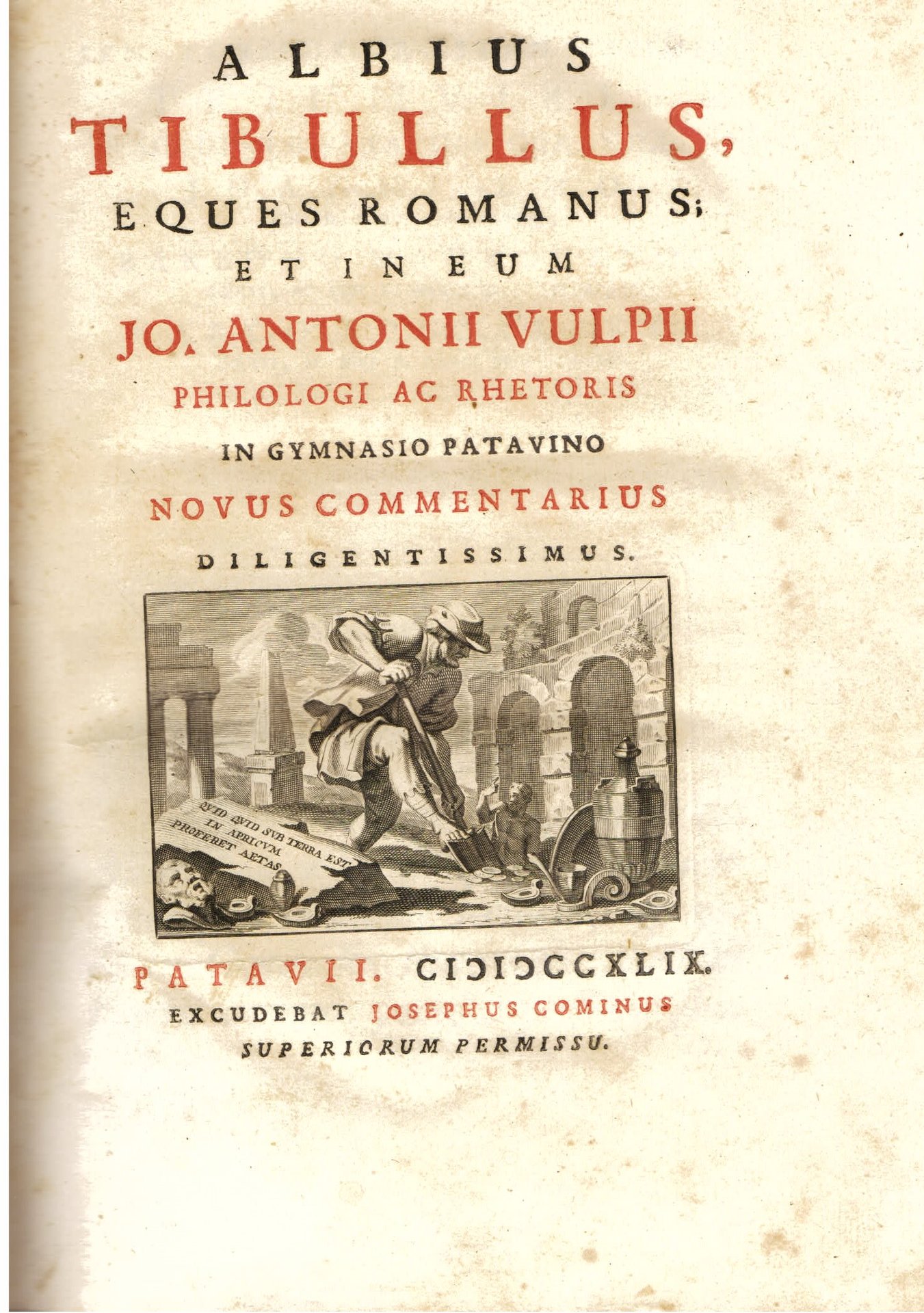 Albius Tibullus, eques romanus, et in eum Jo. Antonii Vulpii philologi ac rhetoris in Gymnasio Patavino novus commentarius diligentissimus
