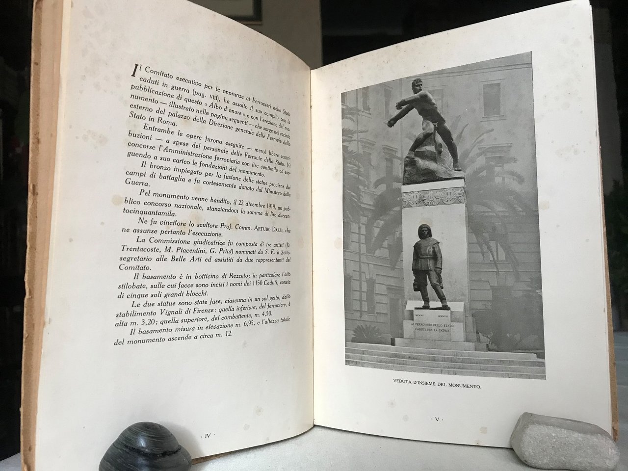 Volume in 8 grande, brossura rigida editoriale figurata ai piatti, titolo al piatto, sguardie, frontespizio, XII, 252 pp. Albo della Gloria dei Ferrovieri illustrato da fotografie. In pi che bello stato, insignificanti mende d'uso. Notevole, poco comune.