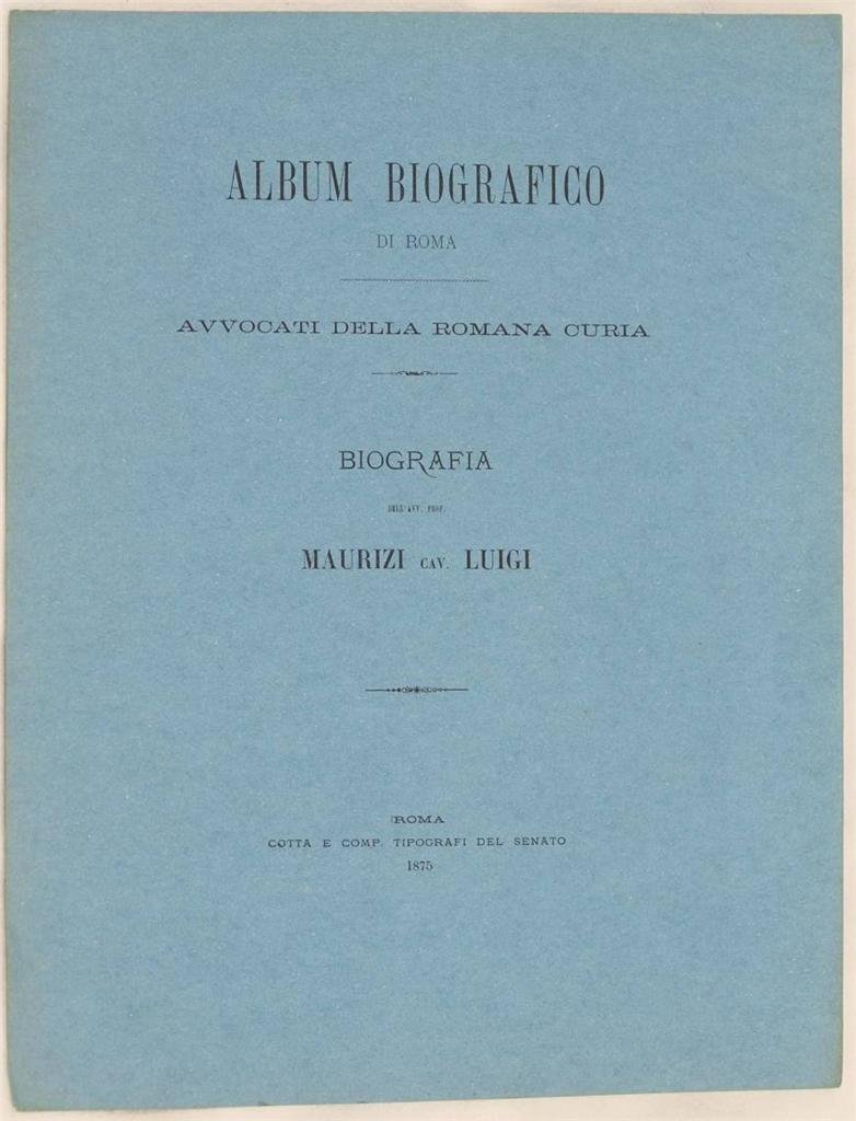 ALBUM BIOGRAFICO DI ROMA AVVOCATI DELLA ROMANA CURIA BIOGRAFIA DELL'AVVOCATO PROFESSORE MAURIZI CAV. LUIGI