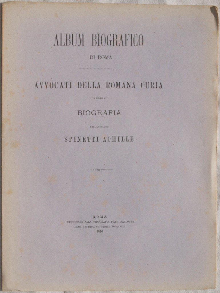 ALBUM BIOGRAFICO DI ROMA AVVOCATI DELLA ROMANA CURIA BIOGRAFIA DELL'AVVOCATO SPINETTI ACHILLE