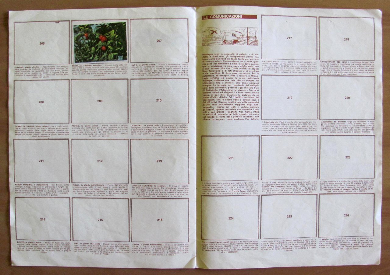Album di Figurine Figurina Club - Conoscere l'Italia - VUOTO con 3 sole figurine presenti n.201, 206 e 264. Editrice Baggioli - Milano, 1973. Due microforellini passanti, come di spillatura, al margine alto dell'Album. Raro, Ottimo stato. ,