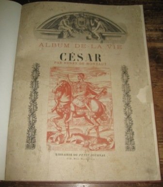 In-folio, pp. 96, legatura moderna in similpelle con titolo dorato al dorso. Conservata la brossura editoriale, illustrata xilograficamente in rosso e in nero. Antiporta figurata, vignetta al frontespizio e centinaia di incisioni xilografiche illustranti la vita e le battaglie di Giulio Cesare n.t. e f.t., di cui alcune a pagina intera o su doppio foglio. Ex-libris di Agostini, Cavaliere della Legion d'Onore e 'Intendant en retraite'. Fioriture e una mancanza al margine esterno della brossura, qualche altra sporadica brunitura. Bell'esemplare. Edizione originale, pubblicata per le cure del 'Journal Illustré', di questa bella iconografia di Giulio Cesare raccolta dal De Montaut, giornalista e disegnatore che al tempo dirigeva, appunto, il 'Journal Illustré'.
