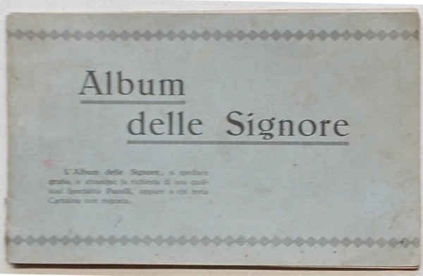 Album in 16° (cm. 10 x 16); composto da 15 tavole a colori di alfabeti e altre basi per il ricamo con al verso la descrizione dei prodotti medicinali della Pacelli; leggera carton. origin. con decori. VG-.