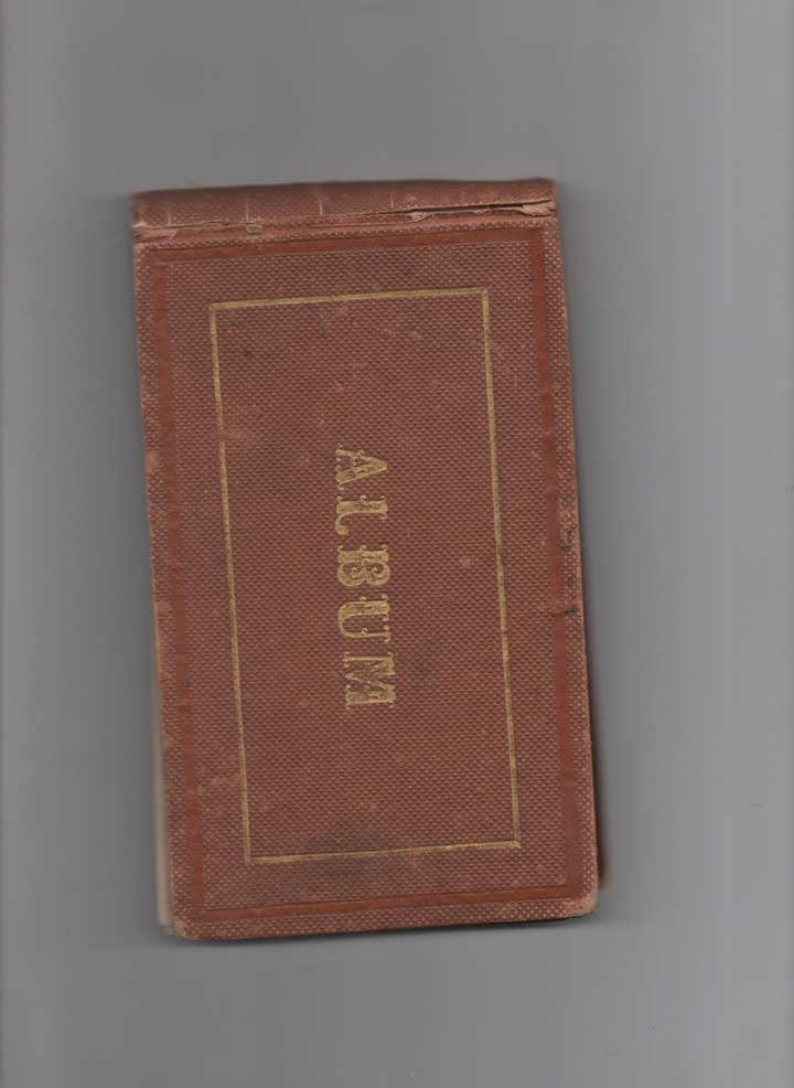 AUTOGRAFO110x190 mm. 34 cc. Manoscritti a penna nera. Alcune dediche sono su fogli volanti incollati alle carte dell'album. Legatura in tela con impressioni in oro. In parte slegata. Tra i molti pensieri, vari scritti da Napoli, taluni sono di argomento patriottico, altri di carattere culturale. Michele Amari: «Saluto l'unità della patria e l'amore fraterno di tutti gli Italiani». Francesco De Sanctis: «L'Italia sarà appena fuori dalla barbarie finché gli editori sono ricchi più degli autori». Luciano Banchi (storico e direttore dell'archivio di Stato di Siena, rievocando invece un'amico): «Pensando che a Firenze in questo giorno […] si scopre la facciata del Tempio di S. Croce […], ricordo con amarezza ineffabile che l'ottimo Gian Pietro Vieusseux me ne parlava con premura […]. Era l'ultima volta che ne udivo la voce […] Siena 3 maggio 1863».