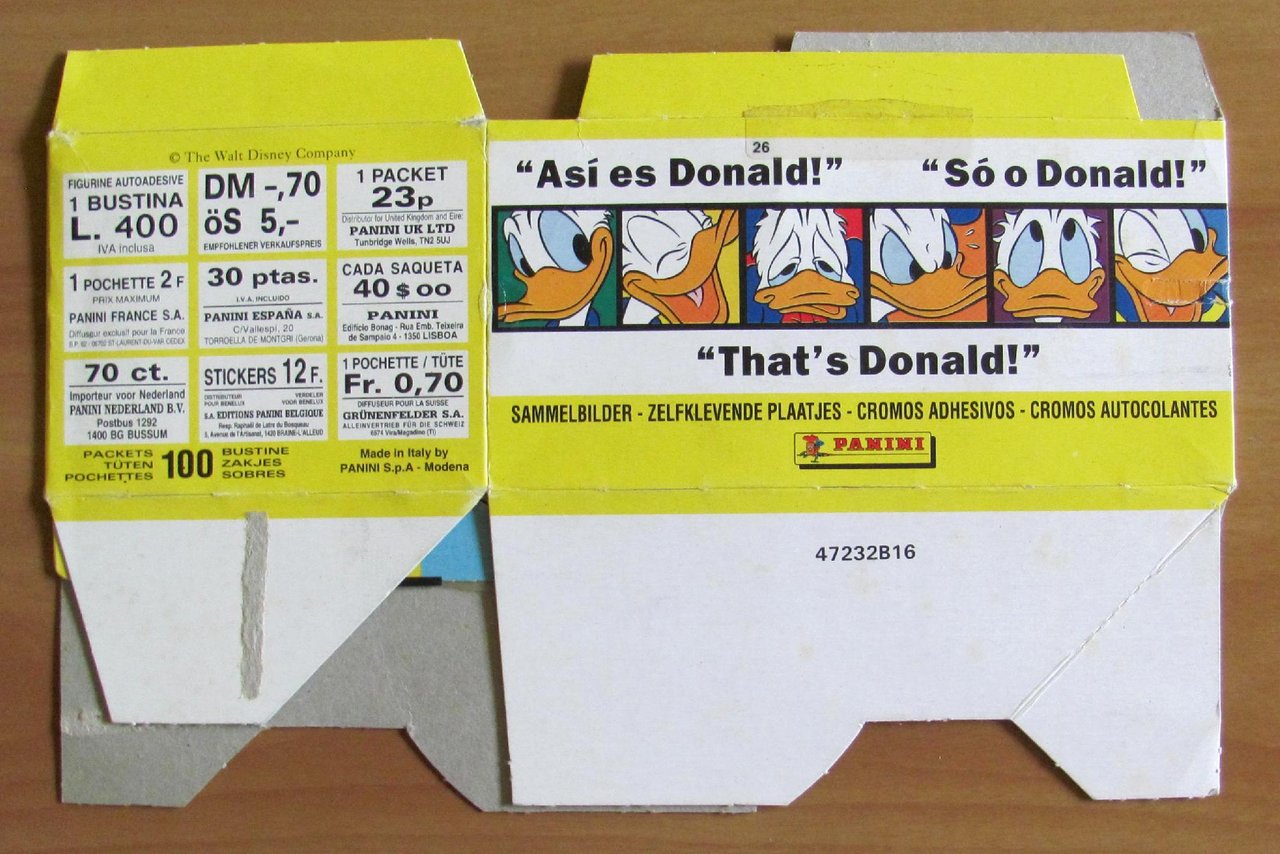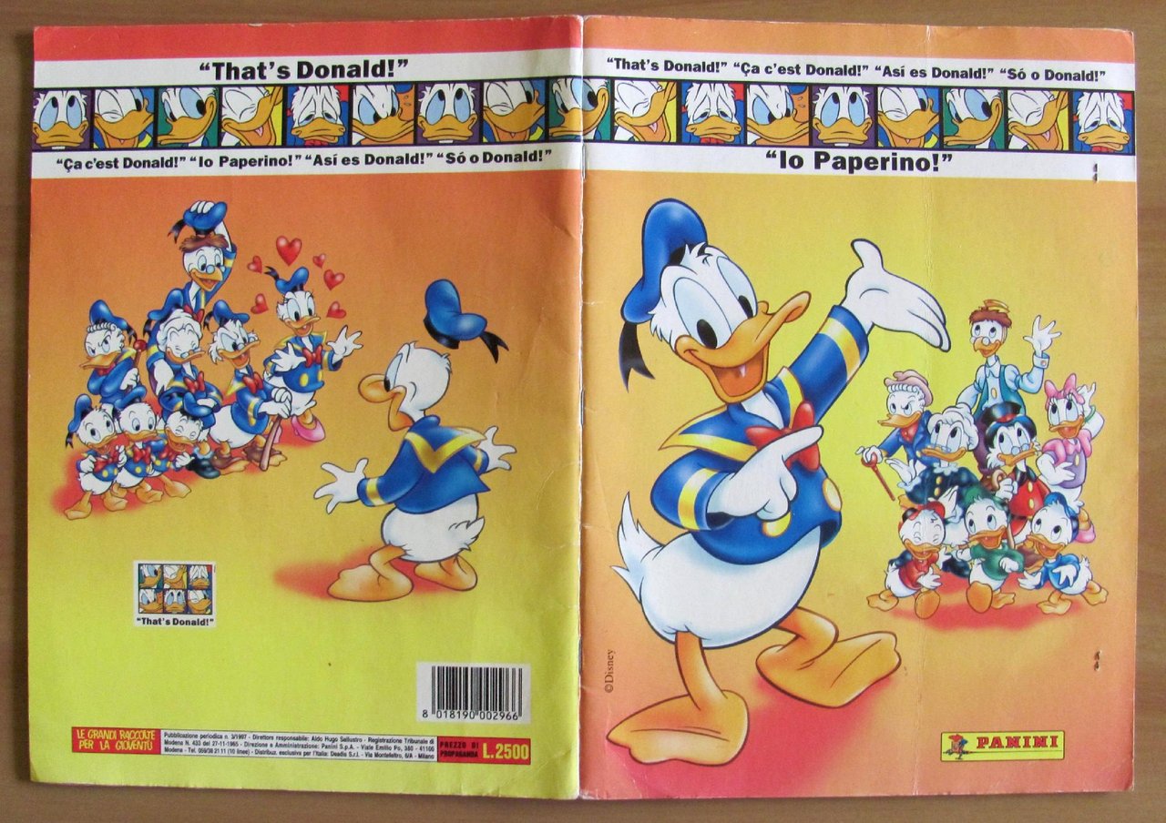 Album di Figurine "Io Paperino" - Completo meno 40 Figurine su 227 con 10 pacchetti di Figurine spillati, più Inserto Poster Rocchetta più Scatola contenitrice originale delle Figurine. Tutto in Ottimo stato. ,