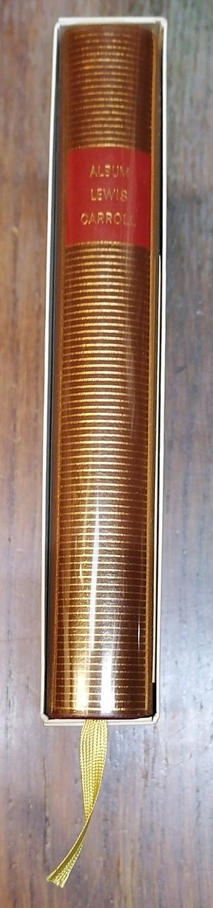 Iconographie choisie et commentée par Jean Gattégno. In 16° grande, legatura editoriale in piena pelle con titoli ed impressioni in oro al dorso, taglio di testa colorato, sovraccoperta in acetato trasparente, segnalibro in tessuto, custodia in cartoncino con ritratto di Lewis Carroll e titoli in rosso e nero su fondo bianco, pp. 365,(3), con 313 illustrazioni in bianco e nero nel testo. Bibliothèque de la Pléiade - Album n. 29. Ottimo stato di conservazione.