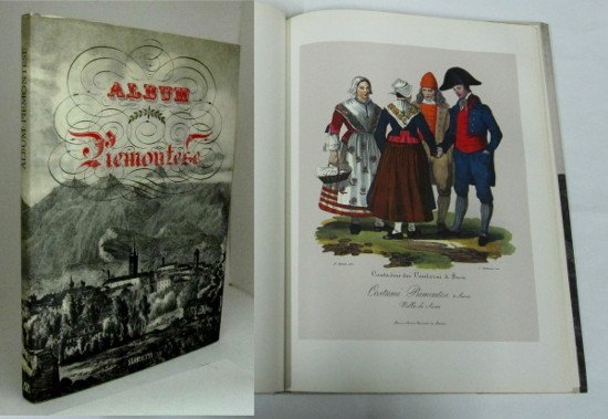In 4to (cm 37x27,5) Legatura in tela sovraccoperta pag. 120 con 32 tav. in nero e 8 a colori riprodotte dagli originali editi da Pietro Marietti nel 1835-1838. 32 vedute di località e 8 tavole di costumi piemontesi disegnate da Gallo Gallina. Testo esplicativo alle tavole tratto dal 'Dizionario storico geografico' del Casalis.