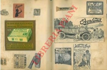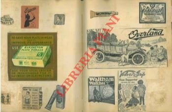 Gran Bretagna, (circa 1890/1910) album in 4to grande, legatura coeva mezza pelle con angoli (con vistoso rappezzo al dorso), legatura allentata, pp. (66) con 370 ritagli in nero e 70 a colori (anche cromolitografiche) di avvisi pubblicitari, depliant, etichette, ecc.
