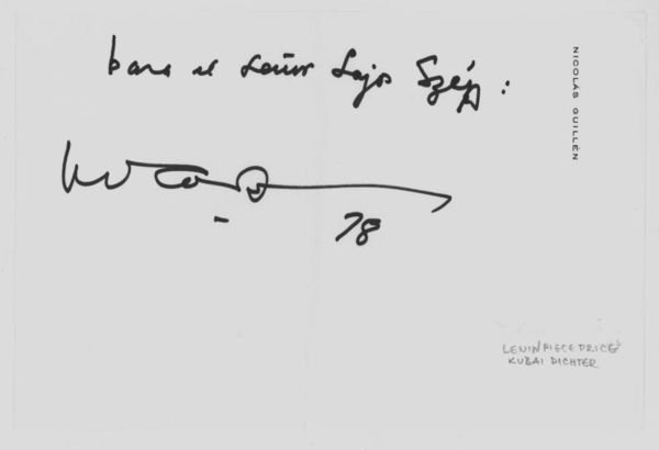 1 S. Qu.-4to. Der kubanische Nationaldichter war 1954 mit dem "Internationalen Lenin-Friedenspreis" ausgezeichnet worden (damals noch als "Internationaler Stalinpreis für die Festigung des Friedens zwischen den Völkern" tituliert). - Auf Briefpapier mit gedr. Briefkopf; Faltspuren.