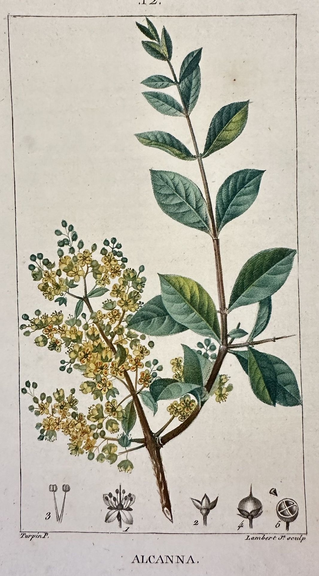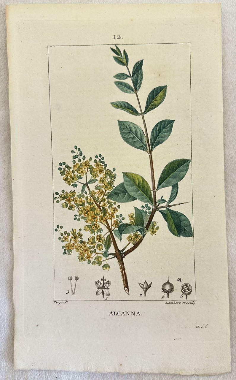 INCISIONE: Litografia con coloritura coeva all'acquarello AUTORE: Lambert su disegno di Turpin ATLANTE: Flore medicinale - Paris, Panckoucke 1814 DIMENSIONI FOGLIO: cm 21,5x12,5 DIMENSIONI INCISIONE: cm 15,5x8,5 EPOCA: 1814 CONDIZIONI: buone condizioni Quest'opera imponente era corredata da centinaia di incisioni che rappresentavano tutto il mondo animale e vegetale. L'opera deriva da un eccellente lavoro di luminari del XVIII secolo supportati dal Re francese Louis XV in seguito guidati dallo stesso Turpin, considerato al tempo il più grande incisore di botanica. La maggior parte delle incisioni sono firmate Turpin & Pretre. Carta bianchissima e resistente di ottima qualità.ENGRAVING: Lythograph with coeval colouring with acquarello painting AUTHOR: Lambert after Turpin ATLAS: Flore medicinale - Paris, Panckoucke 1814 SIZE OF PAGE:cm 21,5x12,5 SIZE OF THE ENGRAVING:cm 15,5x8,5 PERIOD: 1814 CONDITIONS: good conditions This imponent work was made up of different volumes and contained hundreds of engravings that represented all the plant and animal kingdom. This work derives from an excellent work of luminaries of the 18th century supported by the french King Louis XV and then directed by the same Turpin that was considered as the greatest botanical engraver of his time. Very white strong paper of good quality