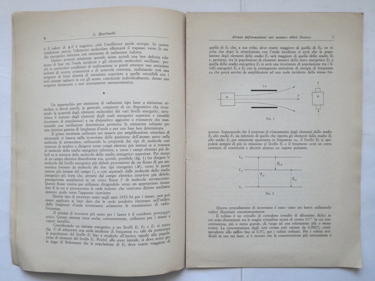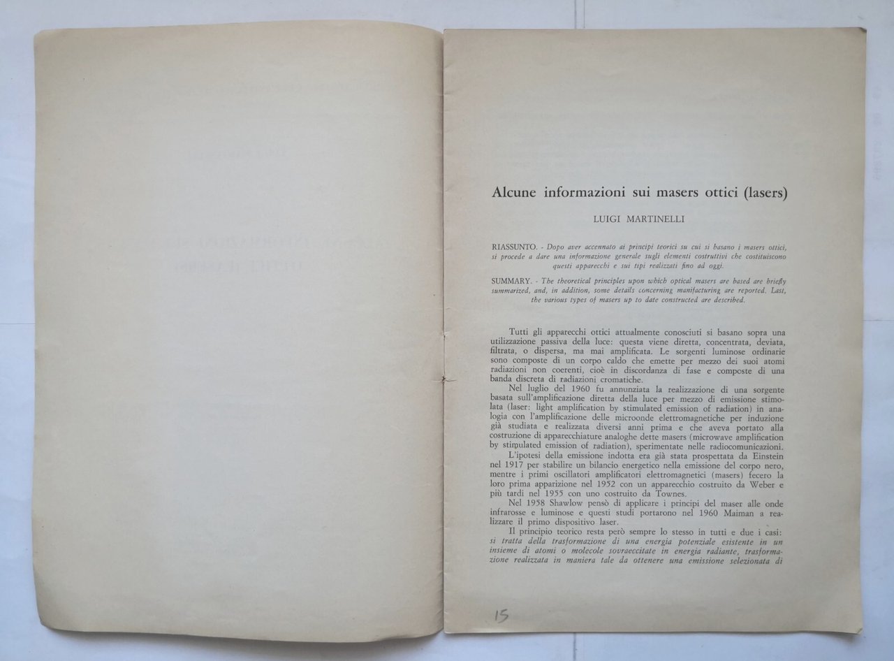 ALCUNE INFORMAZIONI SUI MASERS OTTICI LASERS di Luigi Martinelli Estratto Libro