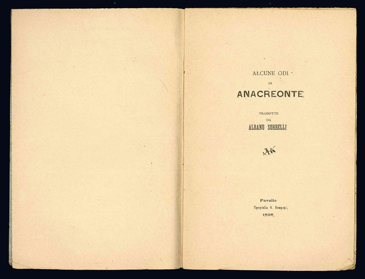 Alcune odi di Anacreonte tradotte da Albano Sorbelli.