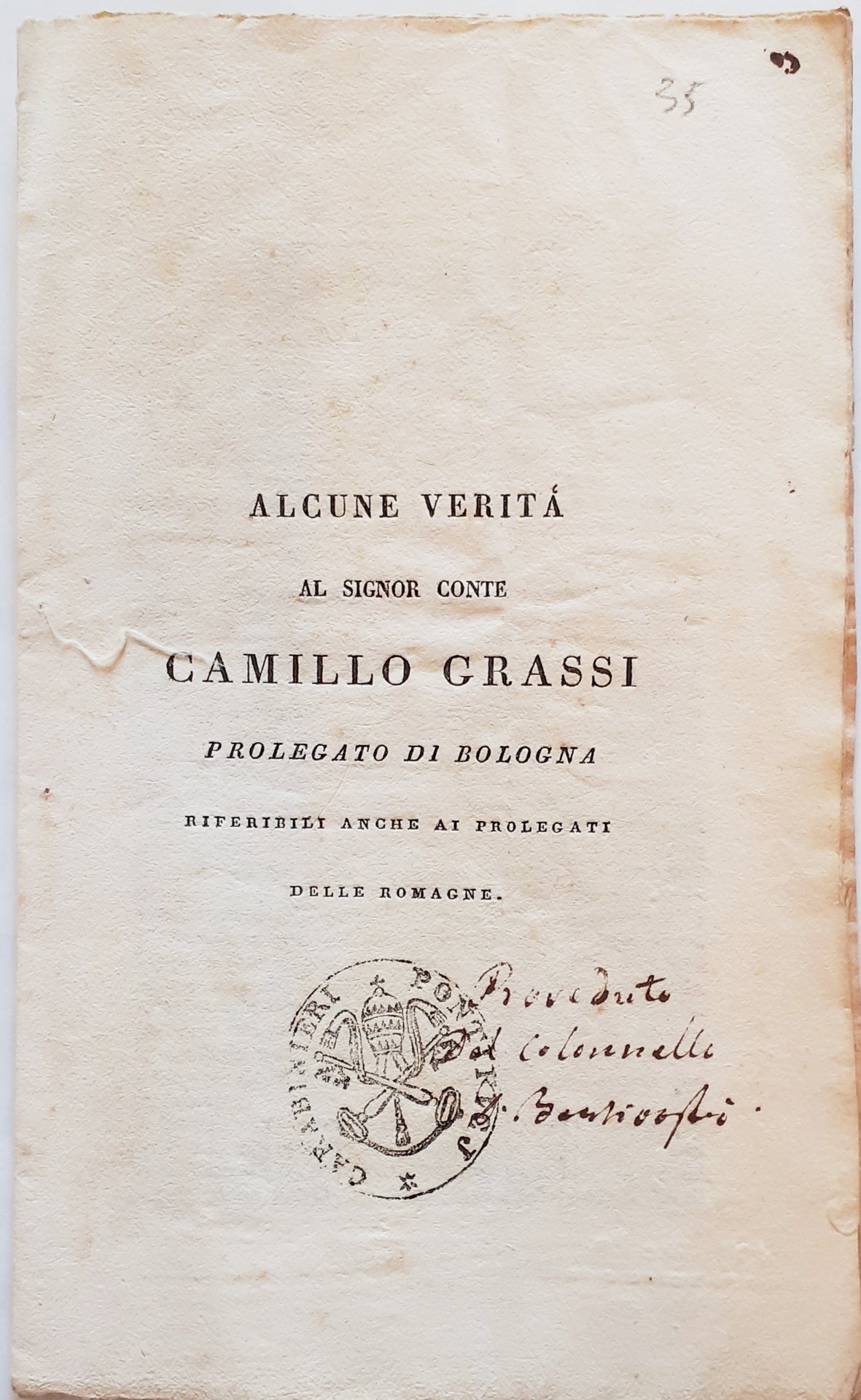 ALCUNE VERITA' AL SIGNOR CAMILLO GRASSI PROLEGATO DI BOLOGNA, RIFERITI ANCHE AI PROLEGATI DELLE ROMAGNE.