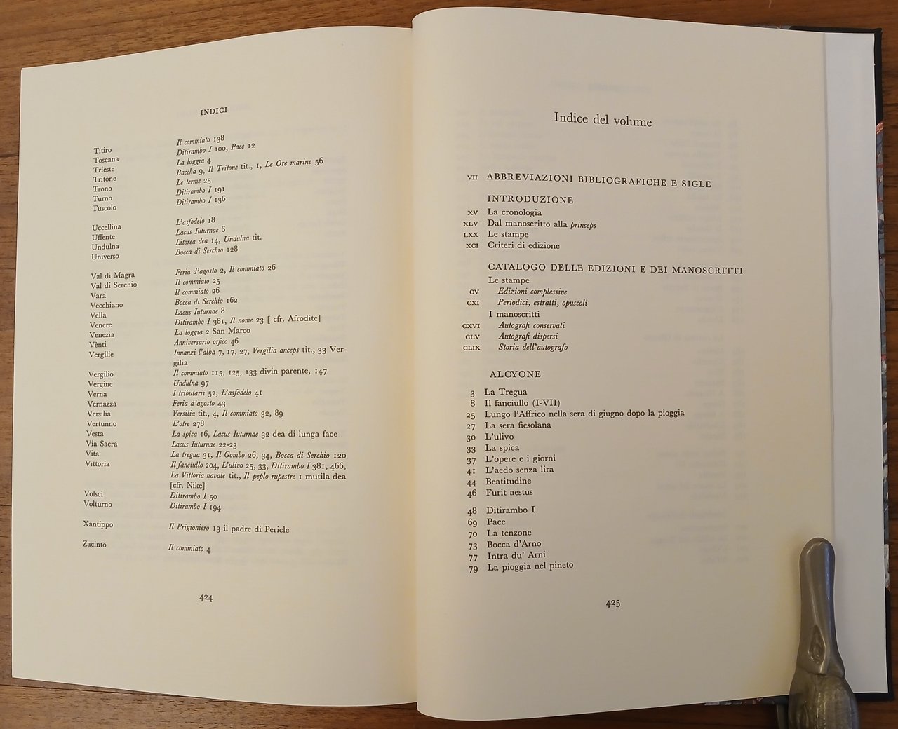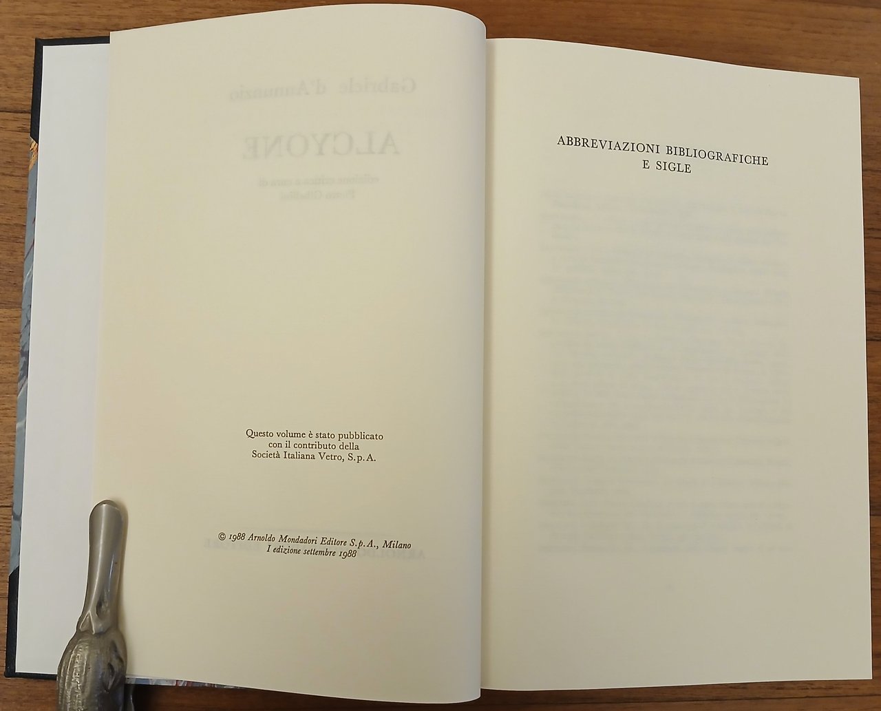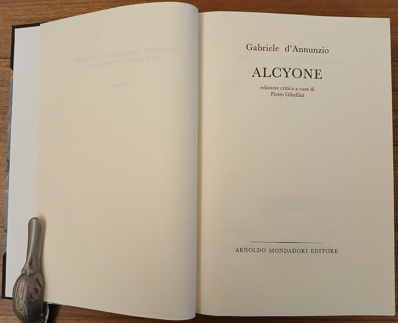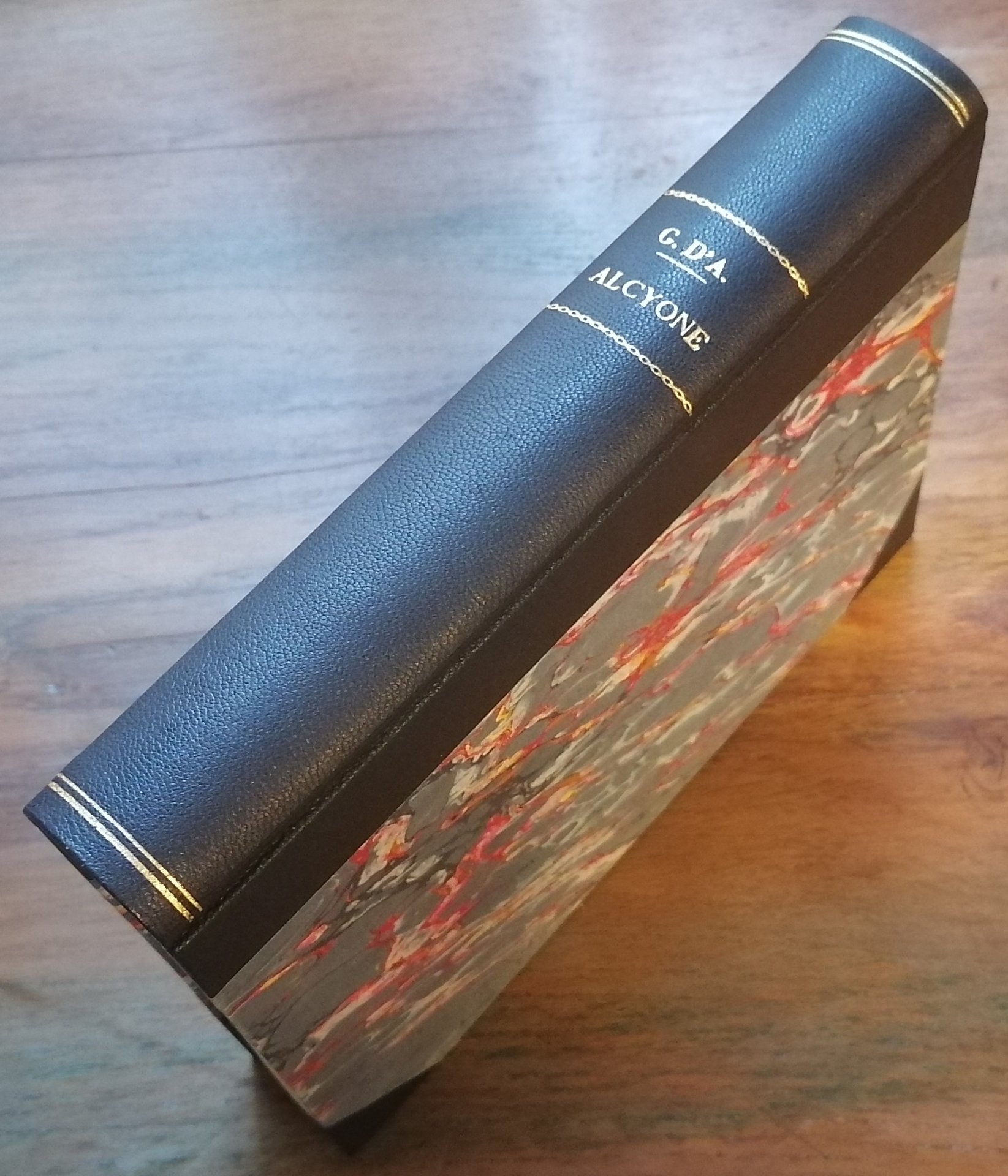Edizione critica a cura di Pietro Gibellini. In 8° (cm 24,2 x 17), legatura in mezza pelle blu con punte, titolo e filetti impressi in oro al dorso, carta marmorizzata policroma ai piatti, pp. CLXV,(1),427,(5). "Edizione Nazionale delle Opere di Gabriele D'Annunzio" (7). Volume impresso nel mese di settembre dell'anno 1988 dalla Stamperia Valdonega di Verona. Ottimo stato di conservazione.