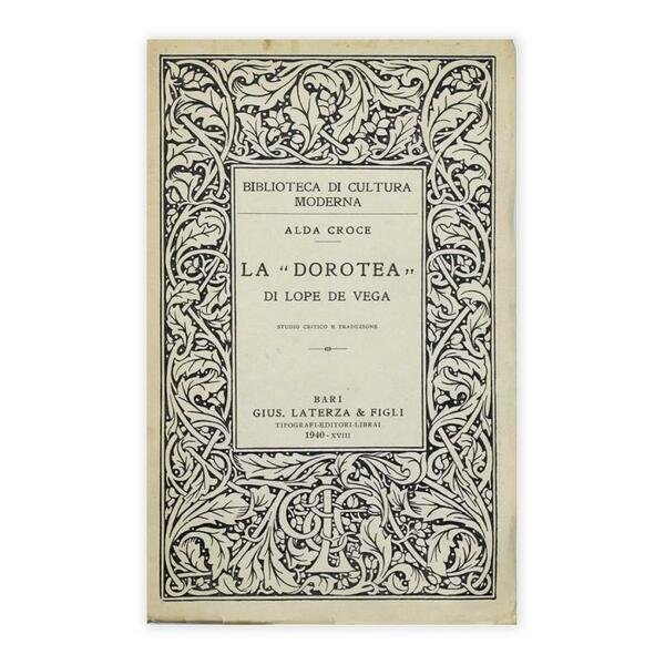Autore: Alda Croce Titolo: La "Dorotea" di Lope De Vega Sottotitolo: Studio critico e traduzione - Biblioteca di cultura moderna Edizione: Gius. Laterza & Figli - 1940 Dimensioni: 13 x 20,5 cm c.a. Pagine: 349 Copertina: Brossura Condizioni: Ottime come da foto