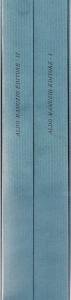 2 tomi in cofanetto. 470 pagine. 18 tavole in b/n. Brossura alla francese. cm 25,5 x 32,8. Collana: Documenti sulle arti del libro, 11. Commento dell'editore: Mancava sino ad oggi agli studiosi la possibilità di procedere speditamente a un esame dell'eccezionale e vario corpus degli scritti di Aldo Manuzio, editore, filologo e umanista impegnato a mettere in piena luce una cultura inaugurata dal Petrarca e rifondata da un Poliziano e da un Barbaro. Corpus frammentario, disperso in un centinaio di volumi rari o addirittura rarissimi, pubblicati dallo stesso Aldo nel breve periodo della sua attività significativamente compresa tra la fine del Quattrocento e il primo decennio del Cinquecento. Per riparare a questa lacuna sono state raccolte qui per la prima volta tutte le prefazioni e le note editoriali di Aldo, più la Musarum Panagyris e la prefazione alle Institutiones grammaticae del 1493, in pratica tutti i suoi scritti con l'esclusione delle due grammatiche, latina e greca, e di alcune compilazioni. La raccolta di questi scritti trascende i limiti consueti del mondo della cultura e in prima istanza rappresenta quello che può esser definito l'archetipo della carriera di un editore, non solo nelle sue implicazioni culturali, ma anche in quelle propriamente legate all'attività pratica, come gli approcci con nuovi autori, le «pubbliche relazioni», le necessità della diffusione e della vendita, la fatica diuturna della correzione dei testi, l'introduzione di nuovi caratteri, l'annuncio di novità o di collane, tra cui sono già presenti i «tascabili».