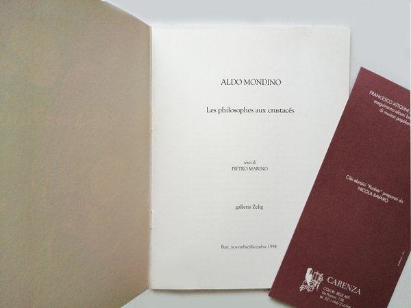 formato 22X17. Brossura editoriale pagine 16. Catalogo della mostra. Con diverse immagini delle opere di Mondino. Bella copia