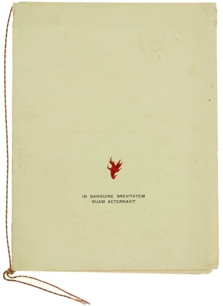 (Codice MT/1644) Edizione ricordo per un ufficiale caduto in A.O., 8 pagine. Vera foto applicata sotto velina, biografia, onorificenze, canto in rima stampato in rosso. Brossura originale, fiammella in ceralacca alla copertina, cordoncino rosa/oro al dorso. Allegato ritaglio da quotidiano: il principe di Piemonte consegna al ten. Zucchi la medaglia d'argento al V.M. Ottimo stato. ~~~ SPEDIZIONE IN ITALIA SEMPRE TRACCIATA
